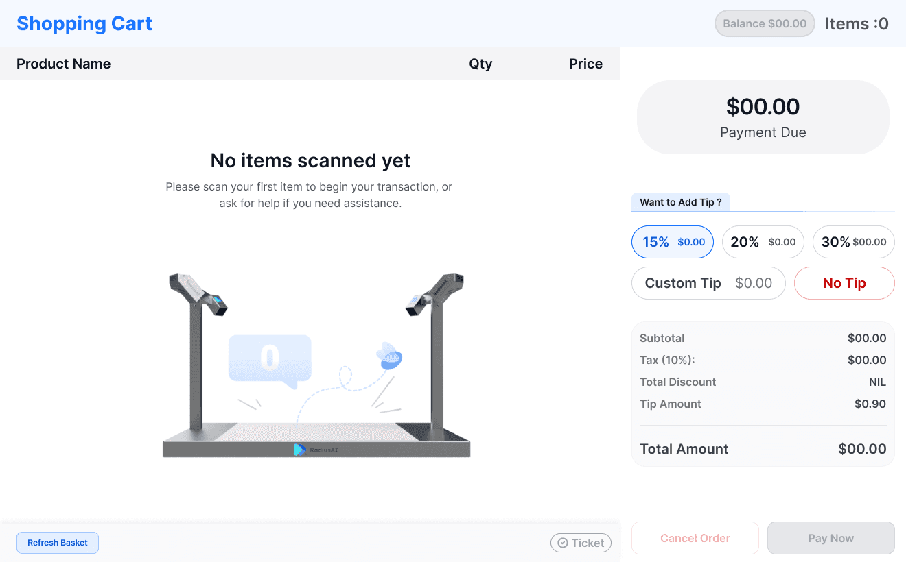 RadiusAI’s computer-vision platform enables automatic item recognition using overhead cameras removing the need for barcode scanning.