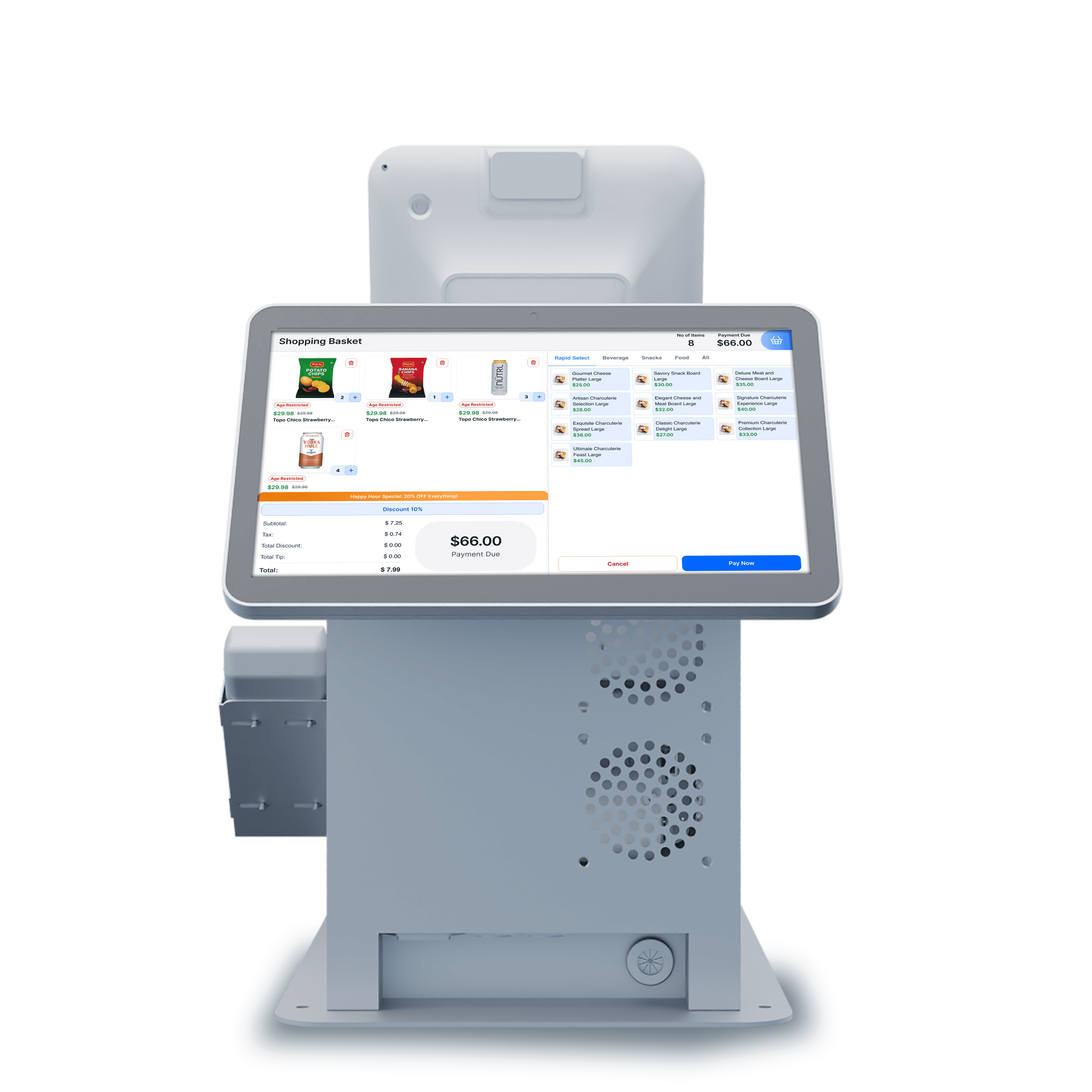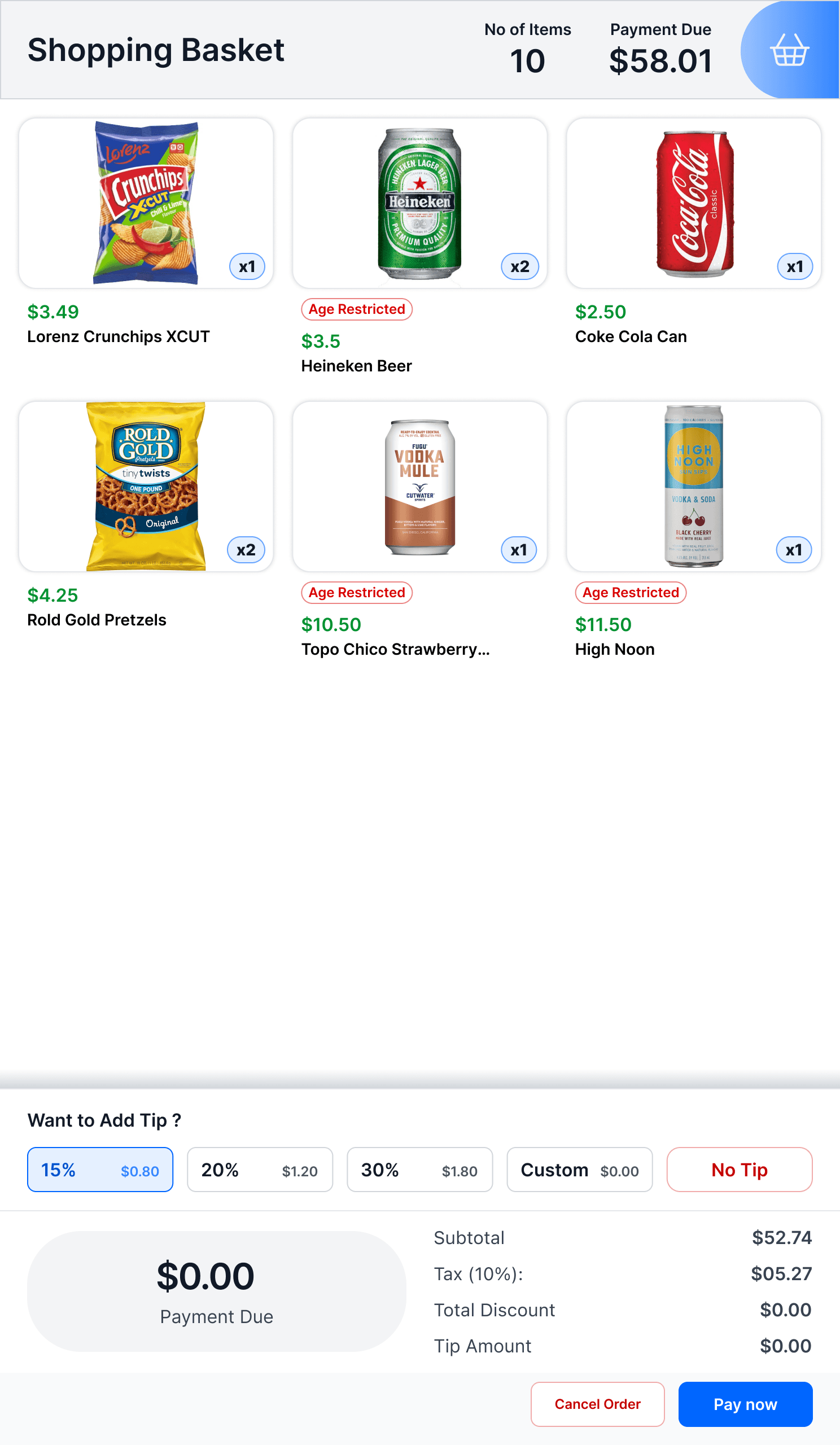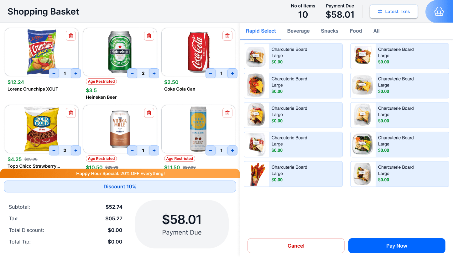 Below is a prototype for the retail POS, originally designed for convenience store environments and aligned with the typical retail customer mental model. The PM team has since adapted these fundamentals to support high-speed stadium checkout scenarios.