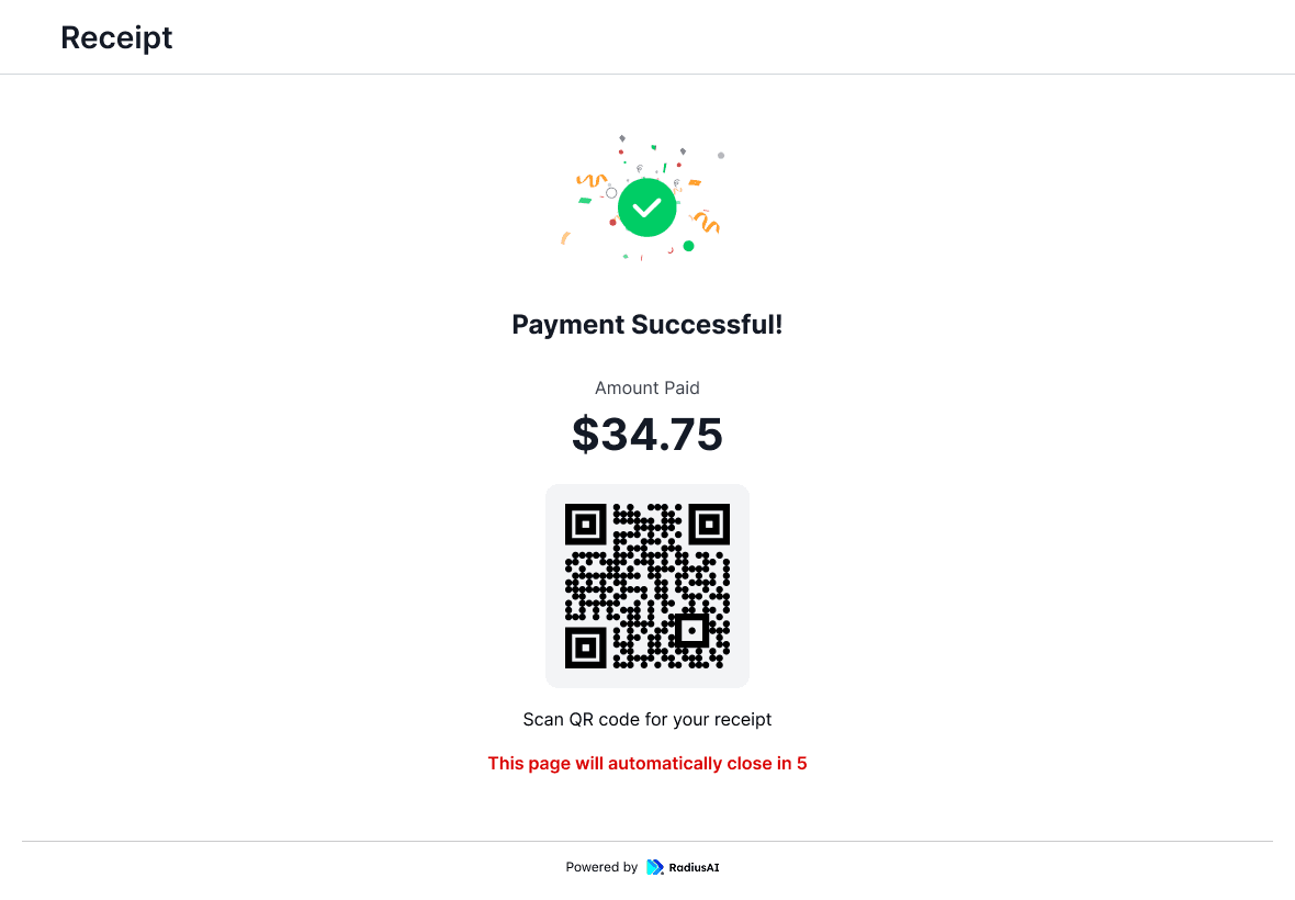QR code for Customer to collect "Receipt"