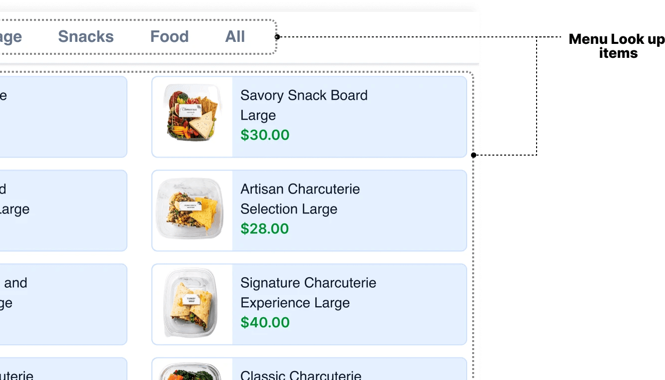 Cashiers can browse the menu and assign the correct item to resolve unknown scans.